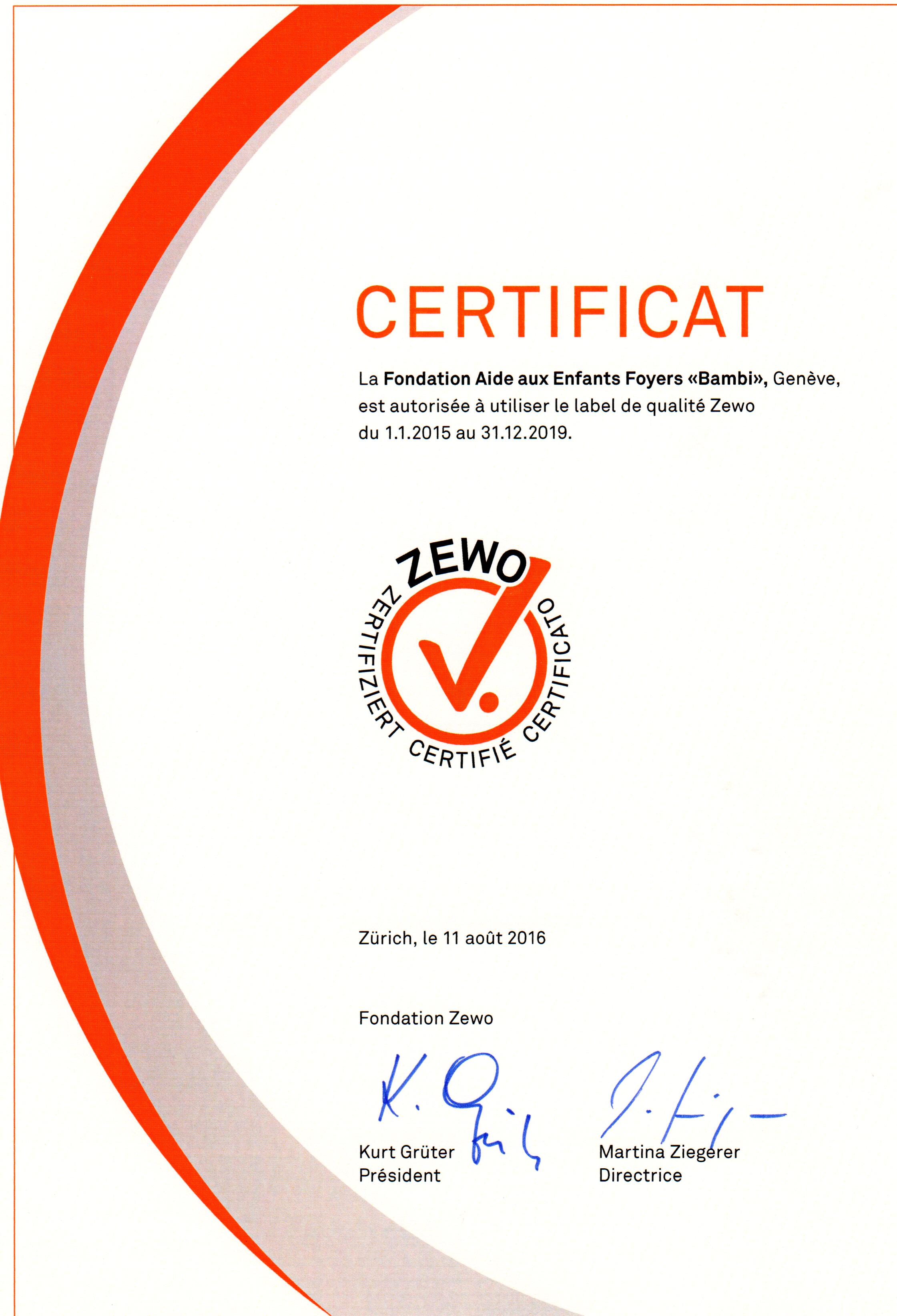 Renouvellement du Label Zewo